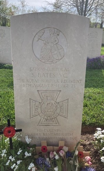 The CWGC cemetery at Bayeux is the last resting place of Sidney Bates VC. Sidney Bates won his VC on 6th August 1944 but died of his wounds received on the 8th. Bates’ actions and his VC citation read like something from a boys own comic book.