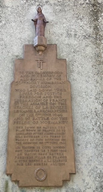 Leaving the cathedral, I spied a tablet on an adjacent wall and found it to be a D-Day memorial to all of the men of the 50th (Northumbrian) Division who landed on Sword beach on 6th June.