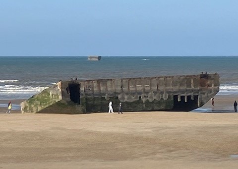 Next stop was in the town of Arromanches where warming coffee and hot chocolate was the order of the day. Arromanches was the site of the man-made Mulberry harbour and many of the sections of this famous harbour can still be viewed, and some of the nearer sections can be walked out to at low tide.