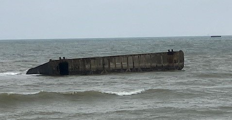 You can get a feel for the size of the Mulberry Harbour when you see a human figure alongside.