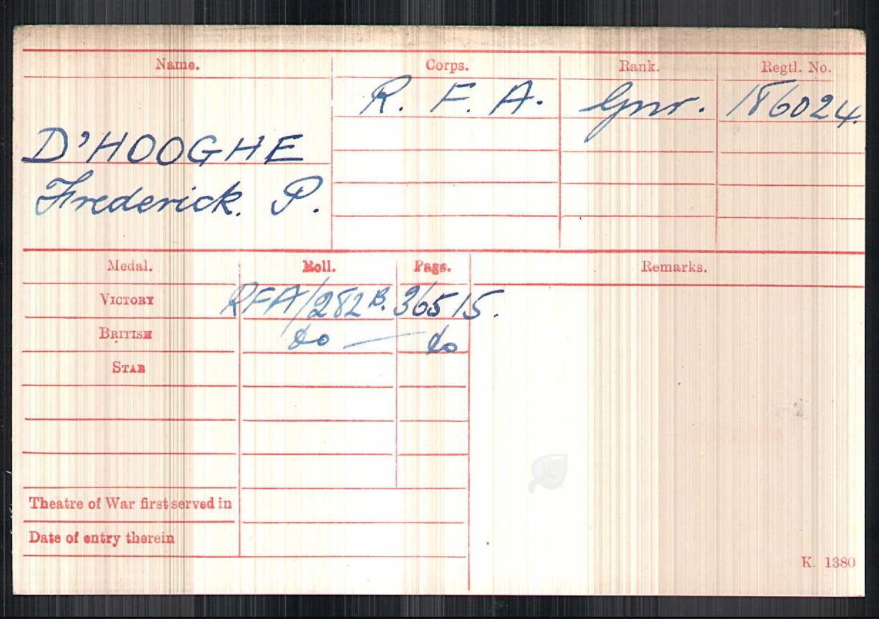 Frederick is fortunate that his WWI Service Record has survived and from this we can see that he attested under the Lord Derby Scheme on 8th December 1915 and then returned to his civilian life until mobilised on 1st November 1916.