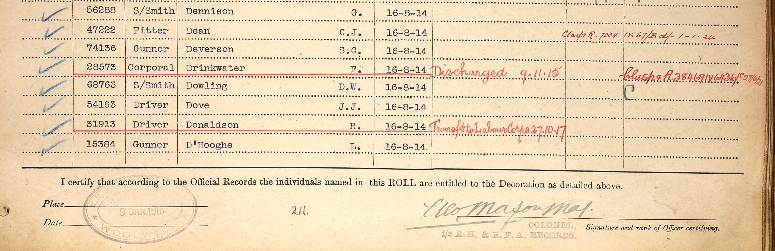 Posted initially to Newport, 15384 Gunner Leonard D’Hooghe joined 116 Battery of the Royal Field Artillery. His records are damaged and difficult to read, but it appears that he agreed to extend his service in 1904 and in due course, he received his Good Conduct chevrons and only had one minor blemish on his disciplinary record – In 1901 at the start of his service he ‘Neglected to obey an order’ and was confined to barracks for seven days.