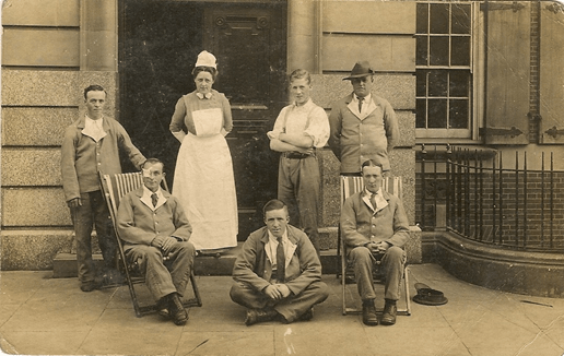Jim remained in this hospital throughout the winter of 1915 (I have a photograph of the ward decorated with a Christmas tree!) but obviously did not respond to treatment and the decision was taken to remove his right eye. His medical record notes in late November 1915 that Jim’s wound was of a permanent nature and that he would never again be fit for active service – at 18 years and 3 months old.