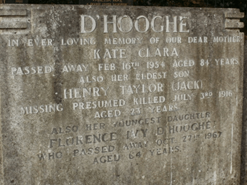 It is likely that Jack lies in one of these plots but we will never know. My great grandmother lived until 1954 and she refused to accept that Jack was dead and refused to have his name added to any war memorial in Nottingham. I discovered her last resting place at Redhill Cemetery, Arnold, Nottingham and was amazed to see that Jack was remembered on her headstone.